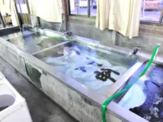 はけ染めを終え、乾燥した布に水を浸し、のり置きされたのりを洗い取り除きます。