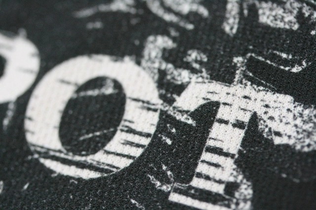 顔料インクと異なり、生地にインクが乗った感じはありません。インクが生地に浸透し、生地本来の柔軟性を損なう事無く、印字面のごわつきもないのが特徴です。昨今のユニフォーム製作では主流となっているプリント方法です。