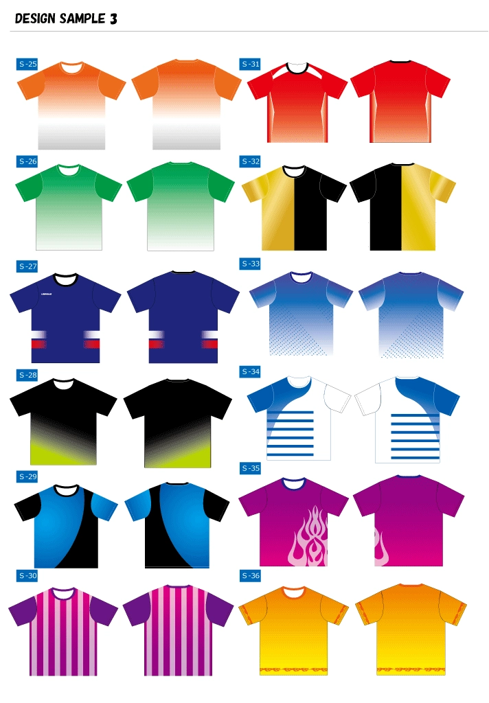 インクを生地に直接染めているので、通常デザイン以外にも、番号、名前、チーム名、エンブレムなども同時にプリントが可能です。デザインを気にすることなく自由にユニフォームを作製することができます。