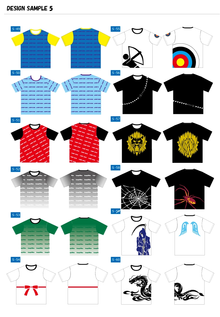 デザインサンプルを多数御用意しております。デザイン作成の際に参考にしてください。サンプル内のデザインを流用することも可能ですので、ご依頼の際にお申し付けください。