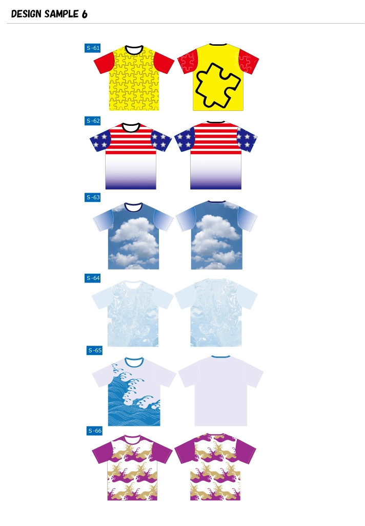 真っ白な生地にプリント後、縫製仕上げしますので、どんなデザインでも自由自在に作成できるのが最大の特徴です。既製品のTシャツには困難な、縫い合わせ箇所を跨(またが)るデザインも可能なので、今までに無いオリジナルTシャツを作りたいお客様にも最適です。もし、自分たちではデザインが難しい場合でも、手書きのイメージ等お送り頂けましたら、弊社デザイナーがお客様のご要望をカタチに致しますので、ご安心ください。