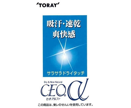 吸水速乾機能が高くさらっとした肌ざわりが特徴の「セオα(アルファ)」を採用。肌触りよく、通気性にも優れたポリエステル素材です。